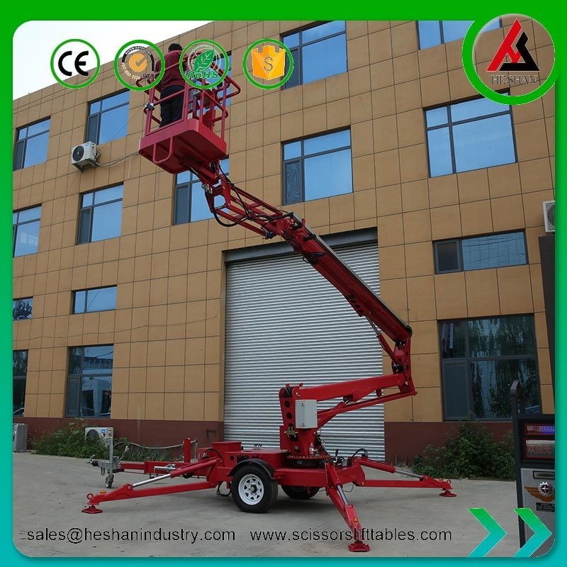รถยกบูมลากได้ 10 ม. Cherry Picker รถกระเช้าลากลากได้ในพื้นที่ขรุขระ